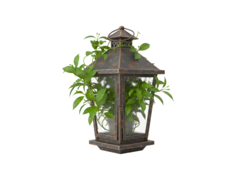 Ornate antique bronze hanging lantern with clear glass panels and a bulb image