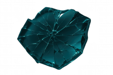 Teal broken glass on transparent background, showcasing a shattered and cracked surface, ideal for compositing and visual effects