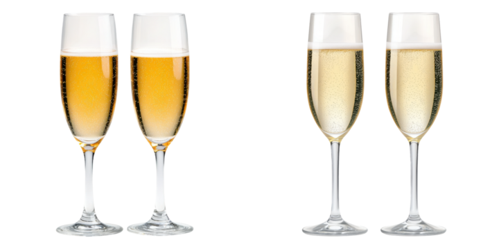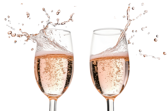 Two Champagne Glasses Clinking with Golden Bubbles Celebratory Toast Isolated on on transparent background PNG