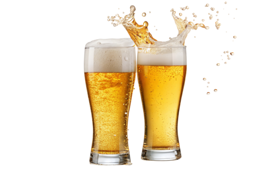 Two Beer Mugs Splash Toast Cheers Isolated on Transparent Background
