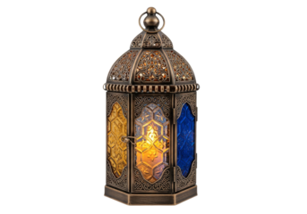 Ornate Golden Lantern: A majestic golden lantern with intricate carvings and a clear glass panel stands tall, ready to illuminate any occasion with warmth and elegance.