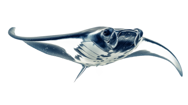 Elegant manta ray gliding gracefully through the clear waters under bright sunlight isolated on transparent background