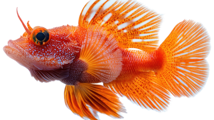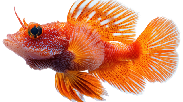 Vibrant Sea Creature: An eye-level capture of a vivid, orange-hued fish, displaying intricate fin patterns and unique features, gliding through its aquatic domain.