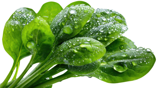 Fresh Spinach Leaves with Droplets: Close-up of vibrant spinach leaves glistening with refreshing water droplets, emphasizing freshness and natural beauty.