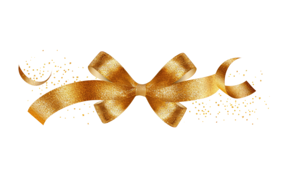 Gleaming Elegance Gold Ribbon Sparkles on a White or Clear Surface PNG Transparent Background