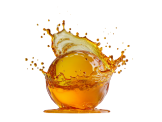 Dynamic Honeycomb Elixir Burst Golden Liquid Sphere Suspended in Time with Translucent Background