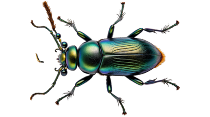 Jewel bug isolated PNG on transparent background, iridescent metallic shield bug with vibrant green and blue colors, insect close-up, no background