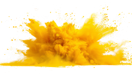 Yellow powder explosion isolated on a transparent background