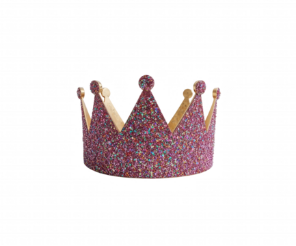 Sparkling Celebration, A Vibrant Birthday Crown for Kids Adorned with Colorful Glitter Accents and Golden Trim