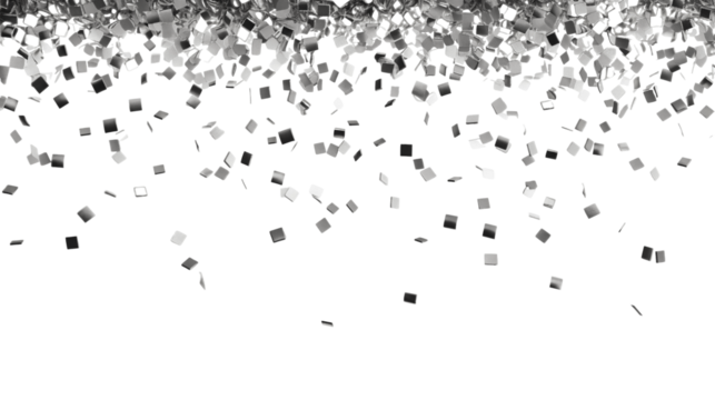 Silver confetti falling, cut out