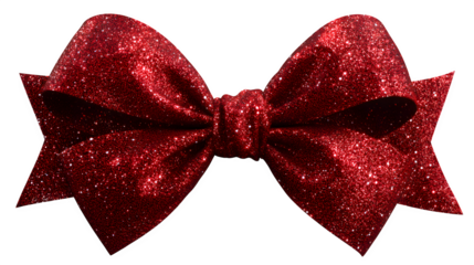 red glittery bow isolated on white background, HD realistic