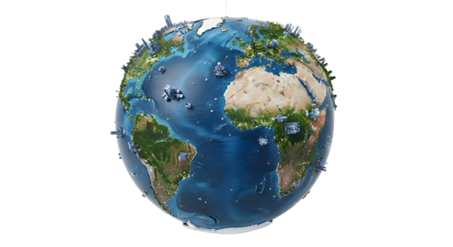 Global network connection concept showing the earth with interconnected nodes isolated on transparent background