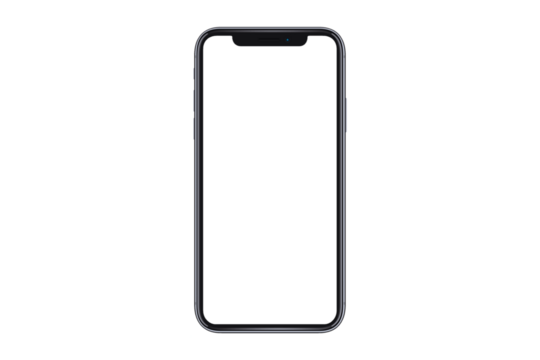 Modern smartphone with blank white screen for custom content display. Isolated mobile phone device on a clean background, ready for your app design or presentation