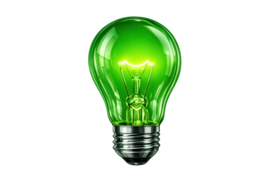 Green light bulb glowing bright, symbolizing sustainable energy, environmental care, innovation, and eco-friendly ideas