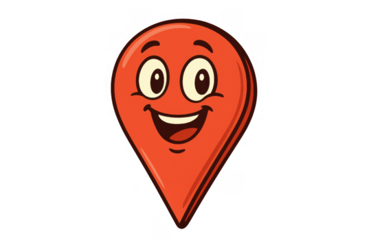 Happy map pin character cartoon illustration pointing location, navigation, and gps on a transparent background
