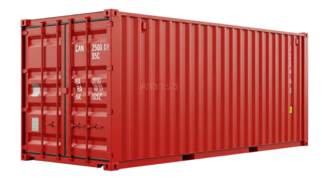 Isolated Red Shipping Container, Transporting Freight across Global Logistics Network System