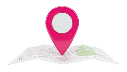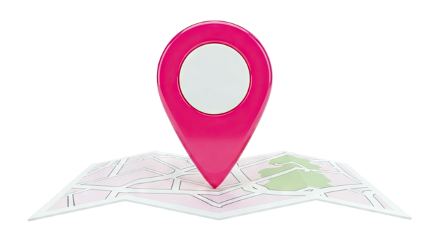 Red location pin icon isolated on transparent background, indicating a specific place or point of interest on a map