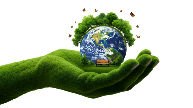 A hand holds a green Earth (1)