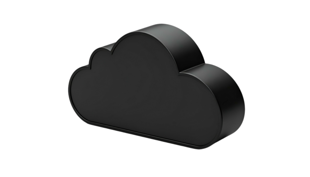 A 3D rendered, black cloud icon with subtle shading against a dark, contrasting background