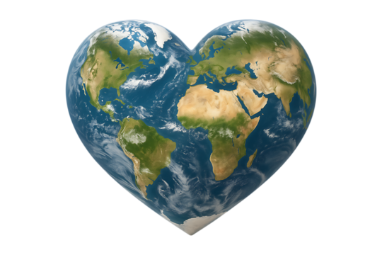 Heart Shaped Earth Globe Showing Continents Clearly Isolated on a Transparent Background