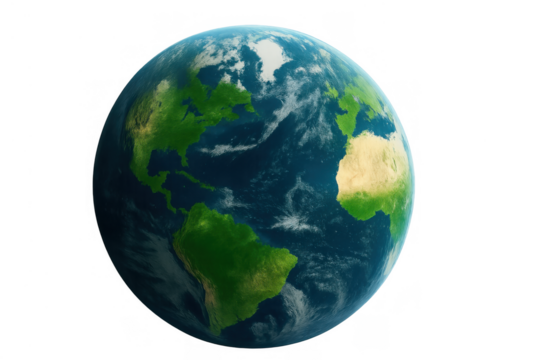 Detailed 3D Render of Planet Earth with North and South America Visible, Isolated on Transparent Background