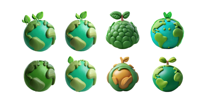 Green Globe Earth 3D Model, Sustainable Ecology for Nature and Environment Themes, isolated on transparent background.