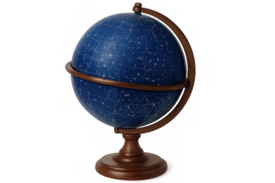 A 3D rendered image of a simplified globe on a stand, representing the Earth. background removed