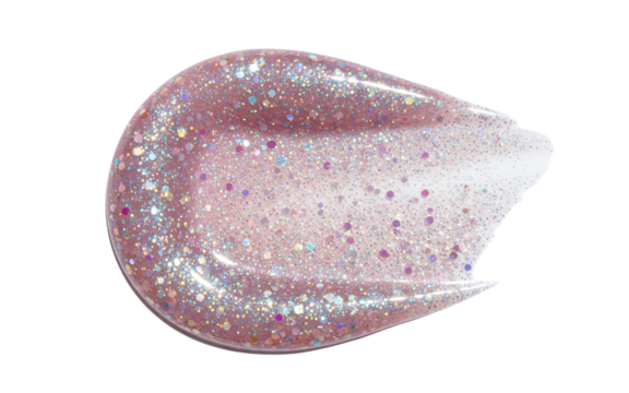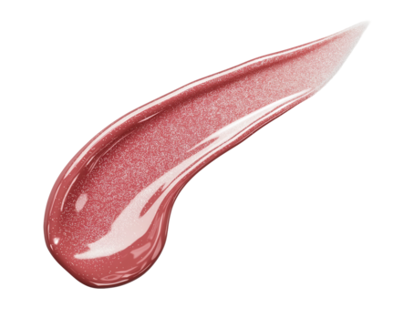 Glossy pink lip gloss smear with natural curve and light reflections, transparent edges, white background, PNG
