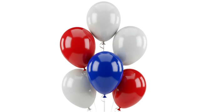 Colorful glossy balloons with ribbon on transparent background