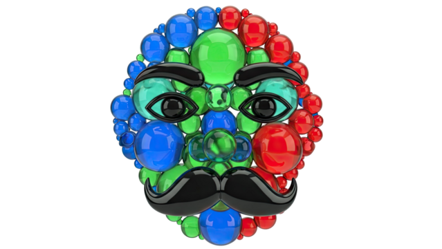 Face formed by colorful glass spheres with a mustache and eyes