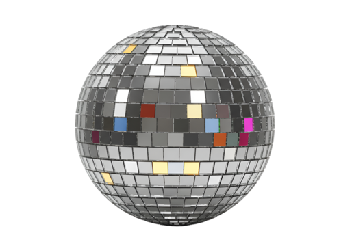 Reflective disco ball with colorful lights on a black background for dance floor decoration and