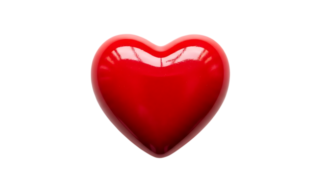 Transparent background of a glossy yellow heart shaped object with smooth surface.