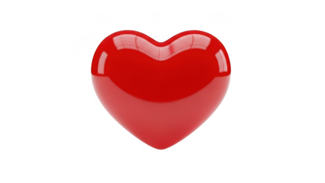 Vibrant heart design with glossy highlight and sparkles on transparent background