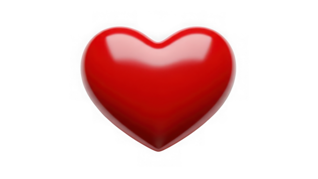 Vibrant heart design with glossy highlight and sparkles on transparent background