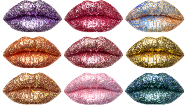 Glamorous gold lips makeup studio beauty photography close-up art. Isolated on transparent background, png.
