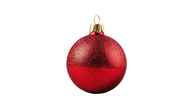 Shiny red Christmas ball isolated PNG on transparent background, festive holiday ornament for seasonal decoration and graphic design use