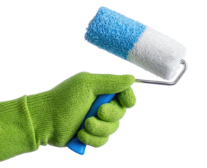 Worker wearing blue work glove giving the thumbs up sign isolated on white background with clipping path.