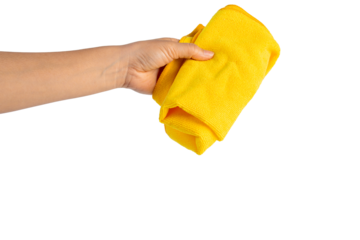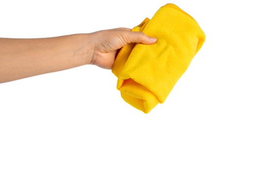Brunette woman in rubber gloves cleaning with spray bottle, transparent