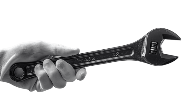 Silhouette of gloved hands holding tool on transparent background