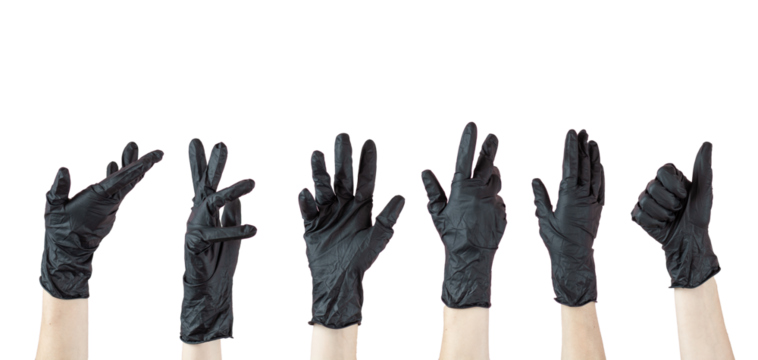 Close-up of an unrecognizable's person hand wearing a black glove over white background