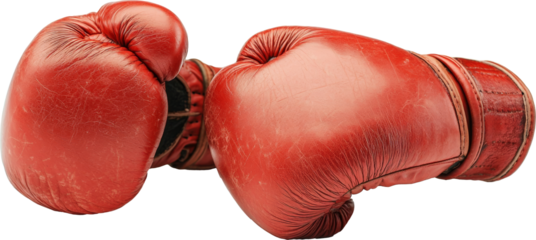 Hanging red boxing gloves for sport and competition isolated PNG with Transparent Background