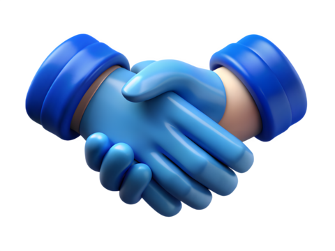 3d cartoon hands in blue gloves shaking in agreement