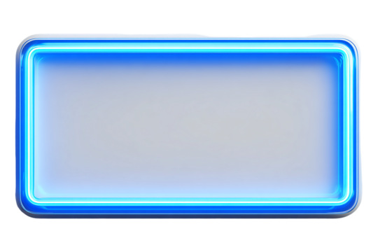Neon blue rectangular sign with glowing border isolated on transparent background for advertising or notification purposes easily