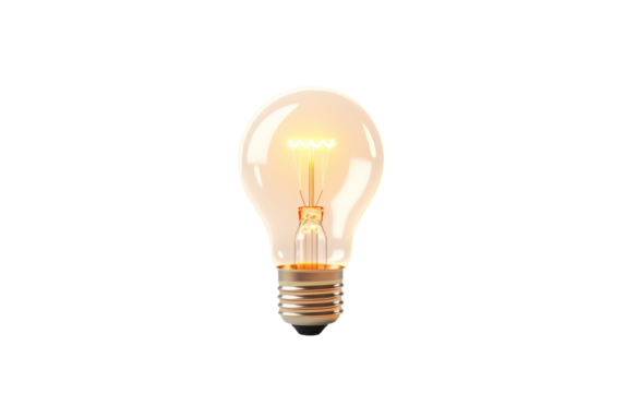 Classic light bulb with a glowing filament, detailed and realistic, isolated on a white background