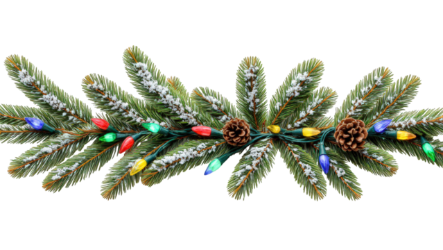 Christmas string lights border with glowing colorful bulbs forming holiday garland on transparent background