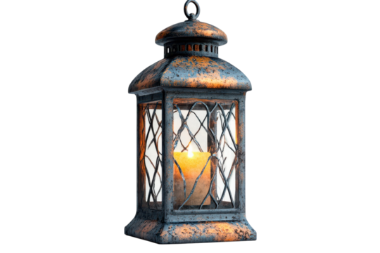 A rustic lantern glowing warmly on a dark background its candlelight offering a beacon of hope and tranquility casting a soft inviting on transparent background