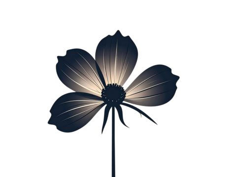 Minimalistic pink flower with purple center on transparent background
