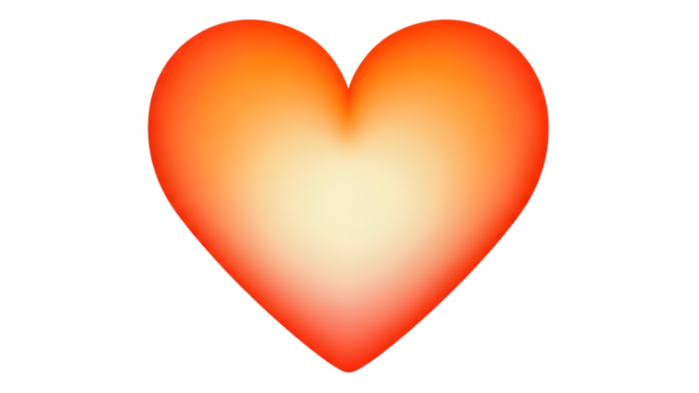 Glowing gradient red heart shape with bright center illumination isolated on a transparent background