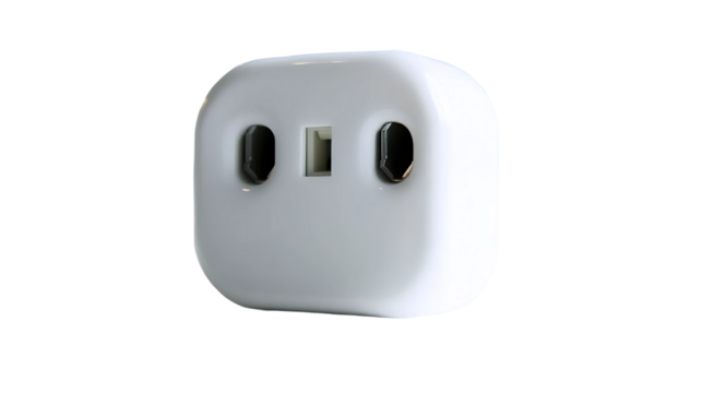 Warm yellow nightlight plugged into a wall socket, isolated on transparent background
