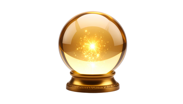 Glowing Golden Crystal Ball emitting a mystical isolated on solid white background Png
